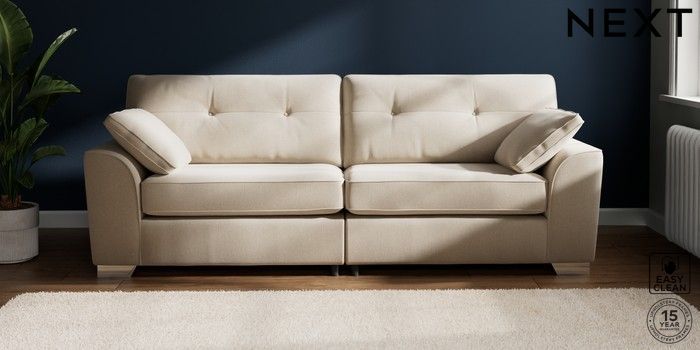 7.2.10 Stamford Buttoned Back 4 Seater Sofa Tweedy Blend Easy Clean Oyster Large Square Angle - Chrome Metal | Made Click here to use our website with more accessibility support, for example screen readers
