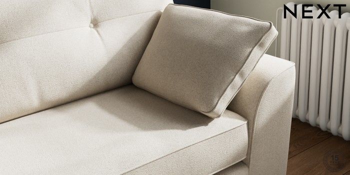 7.2.10 Stamford Buttoned Back 4 Seater Sofa Tweedy Chenille Oyster Large Square Angle - Brushed Brass | Made Click here to use our website with more accessibility support, for example screen readers