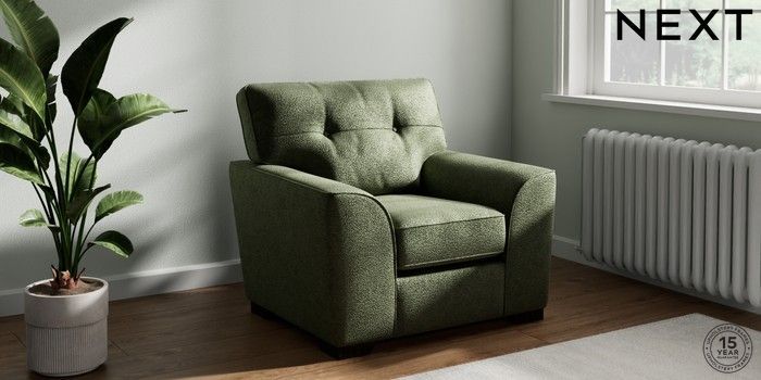 7.2.10 Stamford Buttoned Back Armchair Boucle Chenille Dark Moss Green Square Angle - Dark | Made Click here to use our website with more accessibility support, for example screen readers