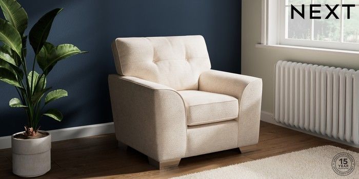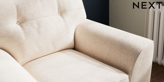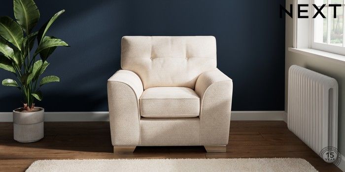7.2.10 Stamford Buttoned Back Armchair Boucle Chenille Oyster Square Angle - Chrome Metal | Made Click here to use our website with more accessibility support, for example screen readers