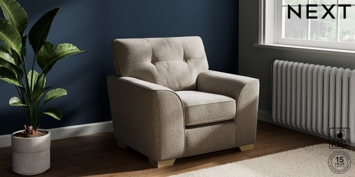 7.2.10 Stamford Buttoned Back Armchair Chunky Boucle Easy Clean Dove Square Angle - Light | Made Click here to use our website with more accessibility support, for example screen readers