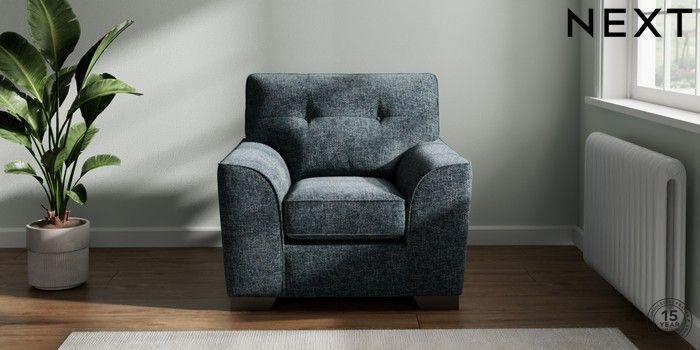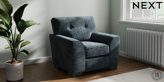 7.2.10 Stamford Buttoned Back Armchair Chunky Chenille Dark Navy Blue Square Angle - Gunmetal | Made Click here to use our website with more accessibility support, for example screen readers