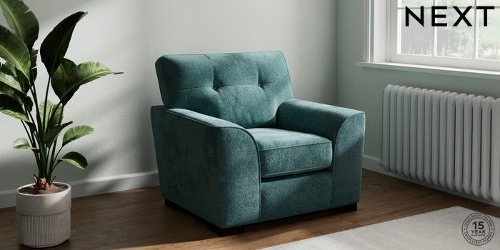 7.2.10 Stamford Buttoned Back Armchair Chunky Chenille Mid Teal Green Square Angle - Dark | Made Click here to use our website with more accessibility support, for example screen readers
