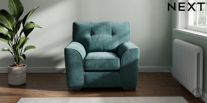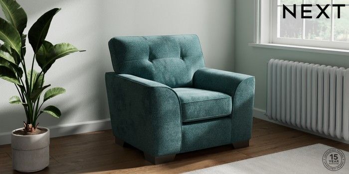 7.2.10 Stamford Buttoned Back Armchair Chunky Chenille Mid Teal Green Square Angle - Gunmetal | Made Click here to use our website with more accessibility support, for example screen readers