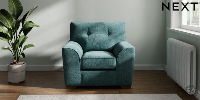 7.2.10 Stamford Buttoned Back Armchair Chunky Chenille Mid Teal Green Square Angle - Mid | Made Click here to use our website with more accessibility support, for example screen readers