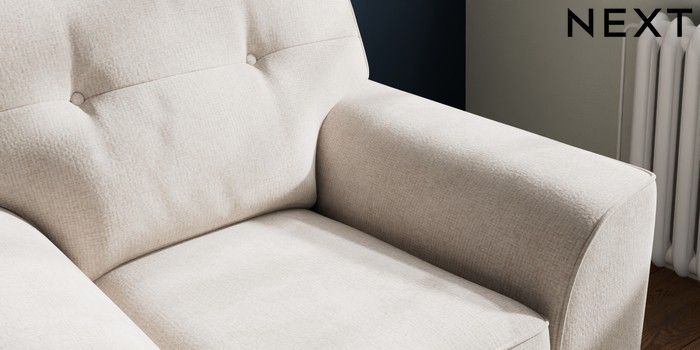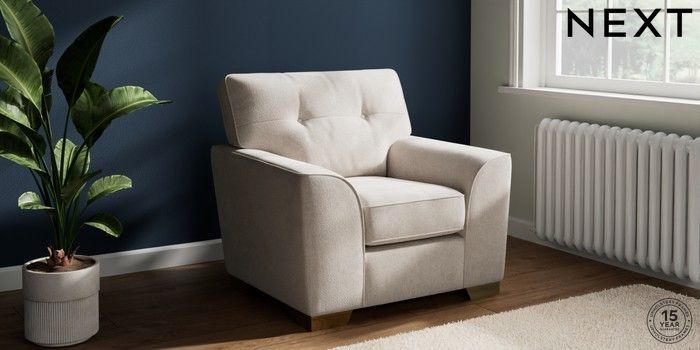 7.2.10 Stamford Buttoned Back Armchair Chunky Chenille Oyster Square Angle - Brushed Brass | Made Click here to use our website with more accessibility support, for example screen readers