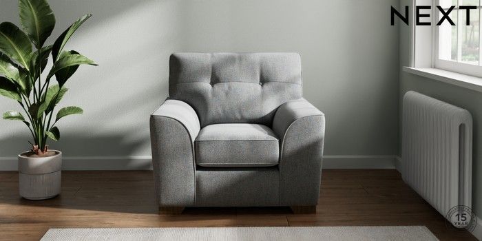 7.2.10 Stamford Buttoned Back Armchair Chunky Marl Mid Grey Square Angle - Mid | Made Click here to use our website with more accessibility support, for example screen readers