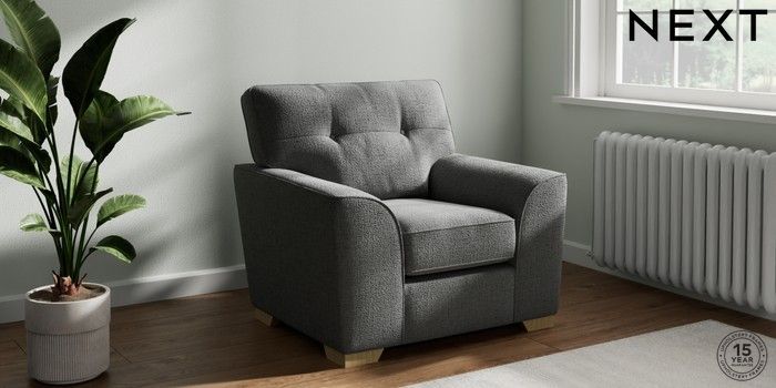 7.2.10 Stamford Buttoned Back Armchair Chunky Texture Dark Grey Square Angle - Light | Made Click here to use our website with more accessibility support, for example screen readers
