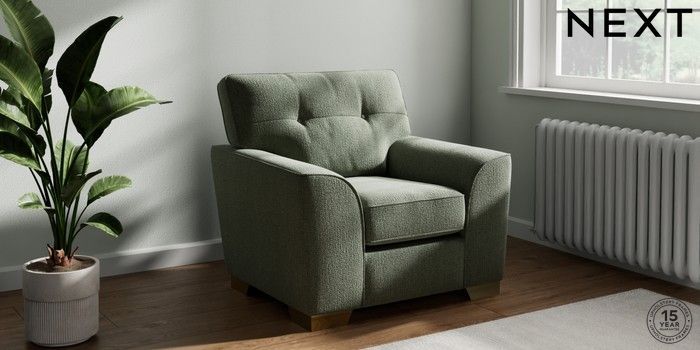 7.2.10 Stamford Buttoned Back Armchair Chunky Texture Mid Forest Green Square Angle - Brushed Brass | Made Click here to use our website with more accessibility support, for example screen readers