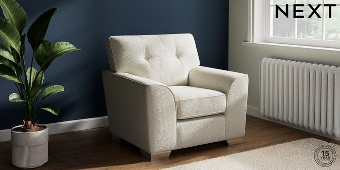 7.2.10 Stamford Buttoned Back Armchair Chunky Texture Oyster Square Angle - Chrome Metal | Made Click here to use our website with more accessibility support, for example screen readers
