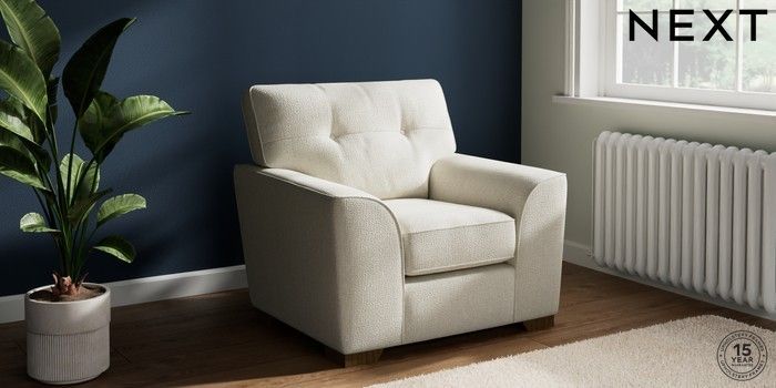 7.2.10 Stamford Buttoned Back Armchair Chunky Texture Oyster Square Angle - Mid | Made Click here to use our website with more accessibility support, for example screen readers