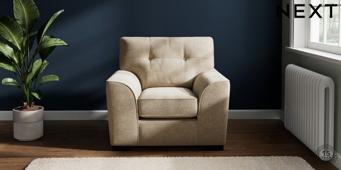 7.2.10 Stamford Buttoned Back Armchair Chunky Weave Cream Square Angle - Dark | Made Click here to use our website with more accessibility support, for example screen readers