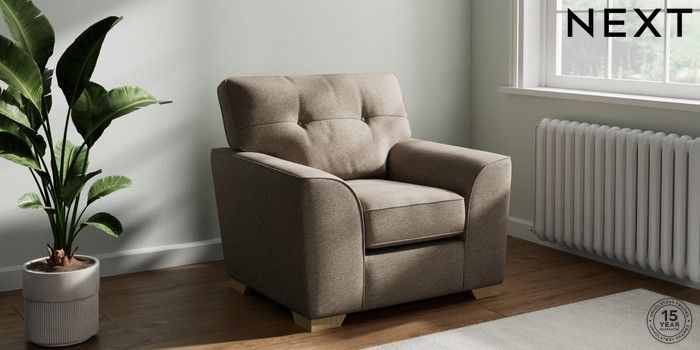 7.2.10 Stamford Buttoned Back Armchair Chunky Weave Dark Natural Square Angle - Light | Made Click here to use our website with more accessibility support, for example screen readers