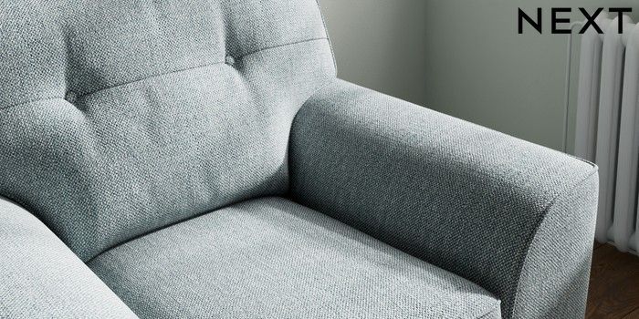 7.2.10 Stamford Buttoned Back Armchair Chunky Weave Mid Blue Square Angle - Light | Made Click here to use our website with more accessibility support, for example screen readers