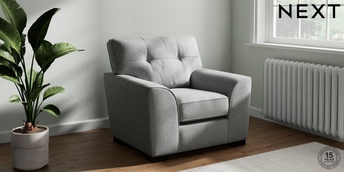 7.2.10 Stamford Buttoned Back Armchair Chunky Weave Mid Grey Square Angle - Dark | Made Click here to use our website with more accessibility support, for example screen readers