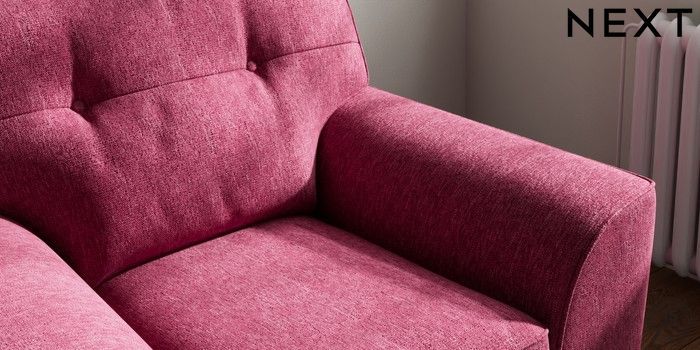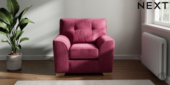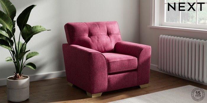 7.2.10 Stamford Buttoned Back Armchair Cotswold Chenille Dark Raspberry Pink Square Angle - Light | Made Click here to use our website with more accessibility support, for example screen readers
