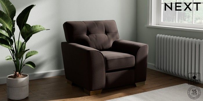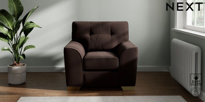 7.2.10 Stamford Buttoned Back Armchair Fine Chenille Easy Clean Chocolate Brown Square Angle - Brushed Brass | Made Click here to use our website with more accessibility support, for example screen readers