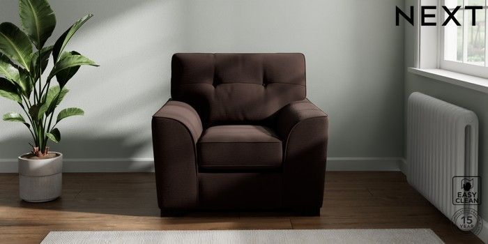 7.2.10 Stamford Buttoned Back Armchair Fine Chenille Easy Clean Chocolate Brown Square Angle - Dark | Made Click here to use our website with more accessibility support, for example screen readers