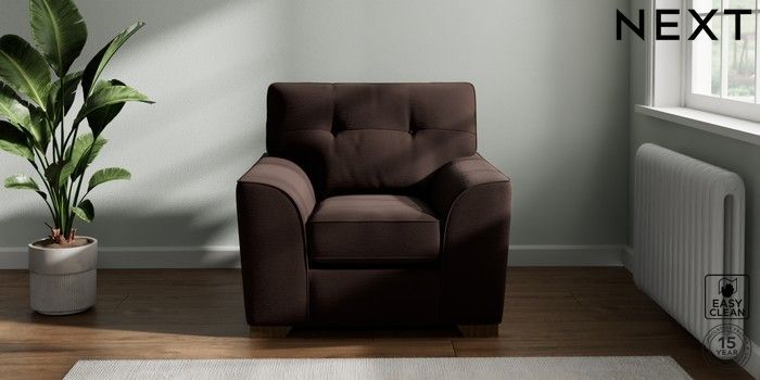 7.2.10 Stamford Buttoned Back Armchair Fine Chenille Easy Clean Chocolate Brown Square Angle - Mid | Made Click here to use our website with more accessibility support, for example screen readers
