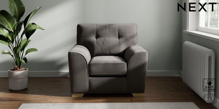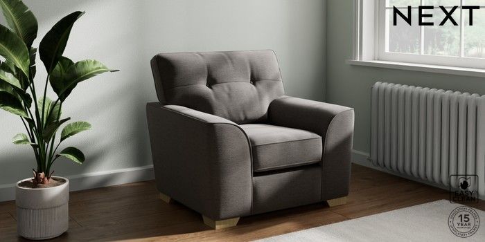 7.2.10 Stamford Buttoned Back Armchair Fine Chenille Easy Clean Dark Smoke Grey Square Angle - Light | Made Click here to use our website with more accessibility support, for example screen readers