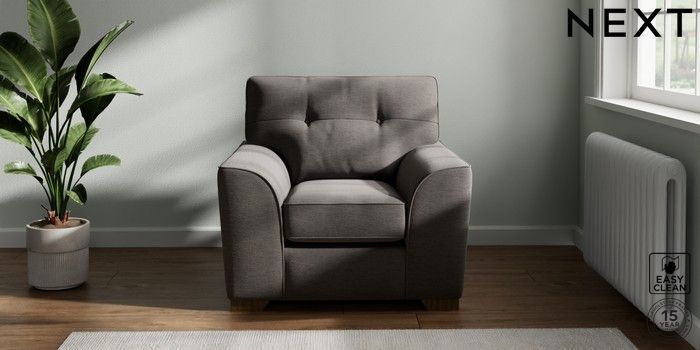 7.2.10 Stamford Buttoned Back Armchair Fine Chenille Easy Clean Dark Smoke Grey Square Angle - Mid | Made Click here to use our website with more accessibility support, for example screen readers