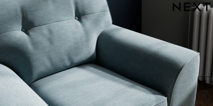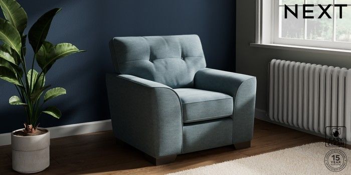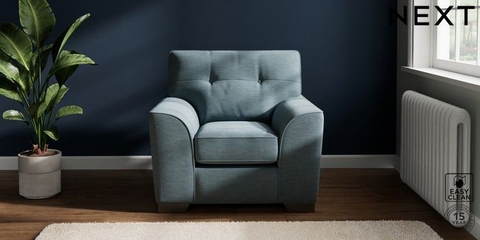 7.2.10 Stamford Buttoned Back Armchair Fine Chenille Easy Clean Mid Blue Square Angle - Gunmetal | Made Click here to use our website with more accessibility support, for example screen readers