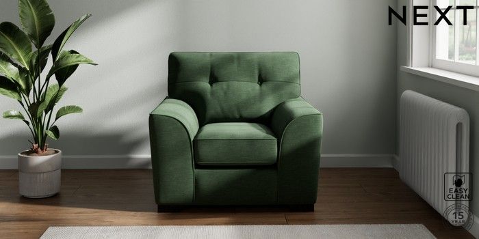 7.2.10 Stamford Buttoned Back Armchair Fine Chenille Easy Clean Mid Khaki Green Square Angle - Dark | Made Click here to use our website with more accessibility support, for example screen readers