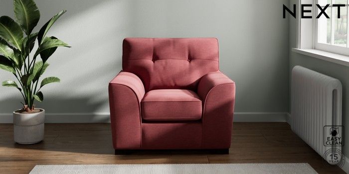 7.2.10 Stamford Buttoned Back Armchair Fine Chenille Easy Clean Mid Pink Square Angle - Dark | Made Click here to use our website with more accessibility support, for example screen readers