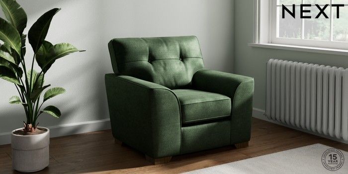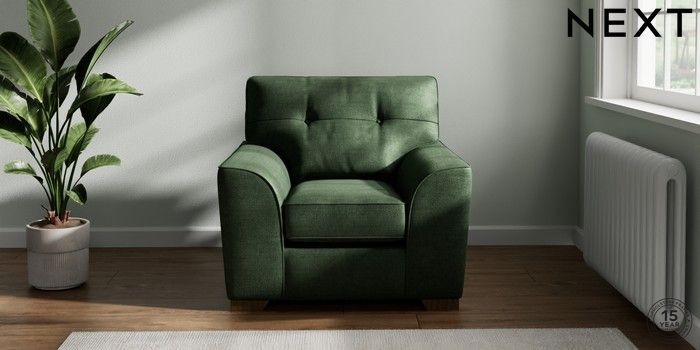 7.2.10 Stamford Buttoned Back Armchair Luxe Chenille Dark Green Square Angle - Mid | Made Click here to use our website with more accessibility support, for example screen readers