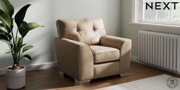 7.2.10 Stamford Buttoned Back Armchair Luxe Chenille Mid Camel Beige Square Angle - Chrome Metal | Made Click here to use our website with more accessibility support, for example screen readers