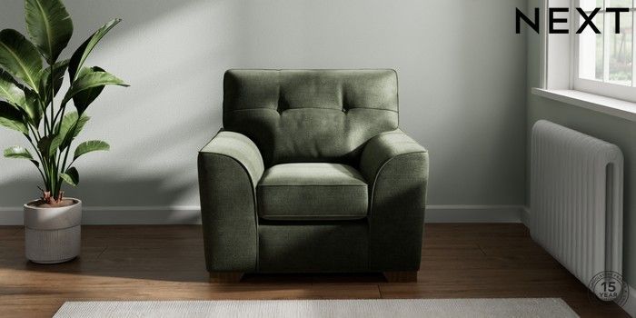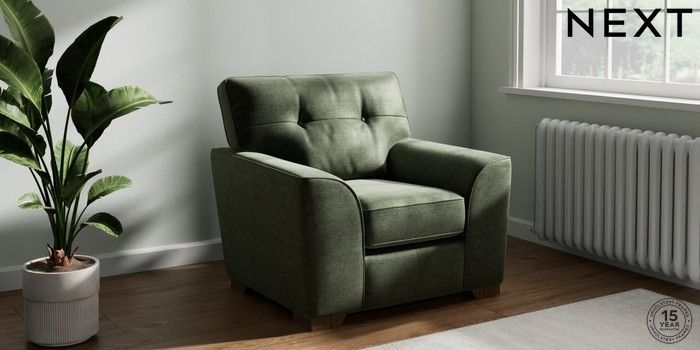 7.2.10 Stamford Buttoned Back Armchair Luxe Chenille Mid Green Square Angle - Mid | Made Click here to use our website with more accessibility support, for example screen readers