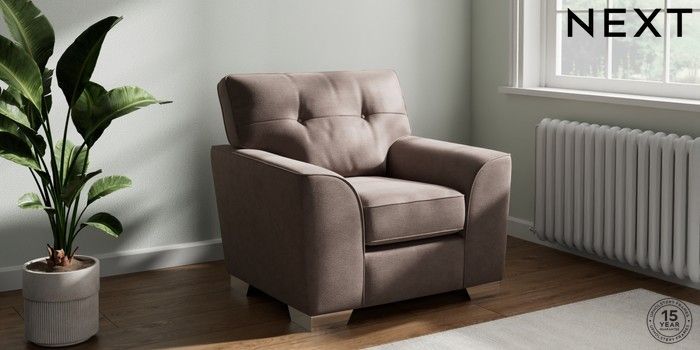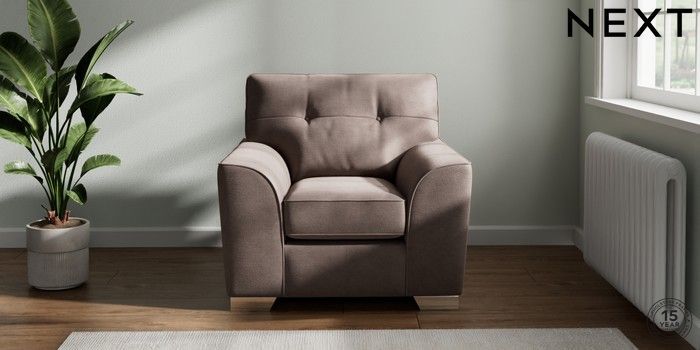 7.2.10 Stamford Buttoned Back Armchair Luxe Chenille Mink Brown Square Angle - Chrome Metal | Made Click here to use our website with more accessibility support, for example screen readers