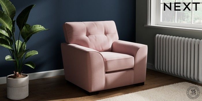 7.2.10 Stamford Buttoned Back Armchair Natural Mix Light Rose Pink Square Angle - Dark | Made Click here to use our website with more accessibility support, for example screen readers