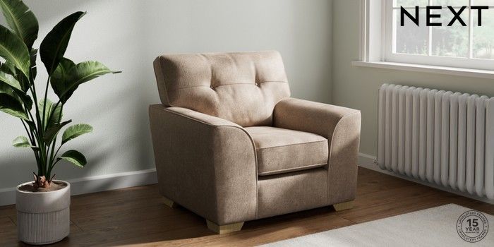7.2.10 Stamford Buttoned Back Armchair Plush Chenille Mid Natural Square Angle - Light | Made Click here to use our website with more accessibility support, for example screen readers