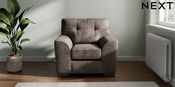 7.2.10 Stamford Buttoned Back Armchair Plush Chenille Mink Brown Square Angle - Gunmetal | Made Click here to use our website with more accessibility support, for example screen readers