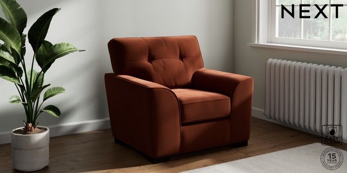 7.2.10 Stamford Buttoned Back Armchair Plush Velvet Easy Clean Ginger Orange Square Angle - Dark | Made Click here to use our website with more accessibility support, for example screen readers