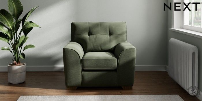 7.2.10 Stamford Buttoned Back Armchair Relaxed Linen Look Dark Green Square Angle - Mid | Made Click here to use our website with more accessibility support, for example screen readers