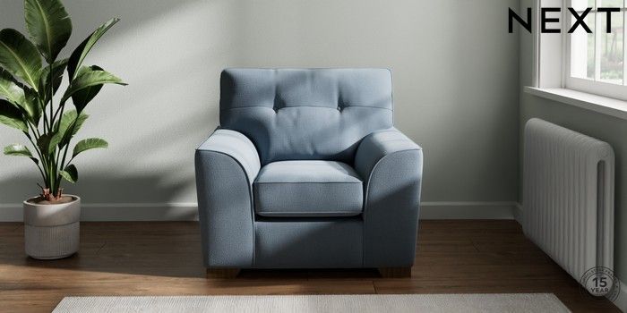 7.2.10 Stamford Buttoned Back Armchair Relaxed Linen Look Mid Blue Square Angle - Mid | Made Click here to use our website with more accessibility support, for example screen readers