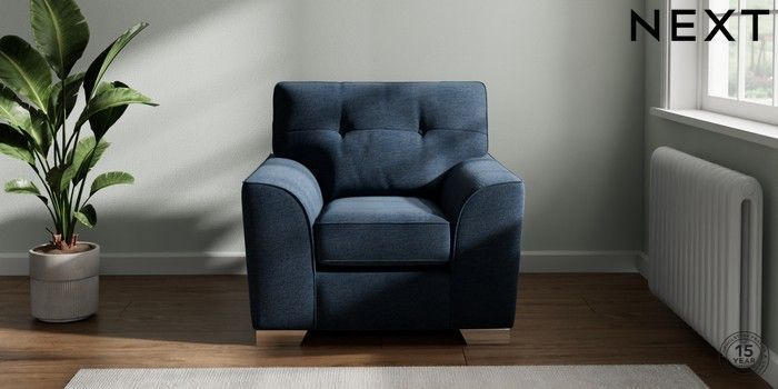 7.2.10 Stamford Buttoned Back Armchair Ripple Chenille Dark Blue Square Angle - Chrome Metal | Made Click here to use our website with more accessibility support, for example screen readers