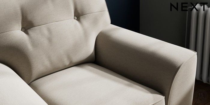 7.2.10 Stamford Buttoned Back Armchair Ripple Chenille Light Natural Square Angle - Brushed Brass | Made Click here to use our website with more accessibility support, for example screen readers