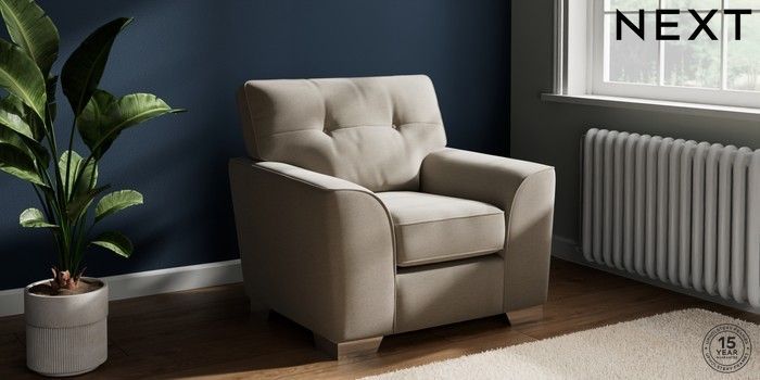 7.2.10 Stamford Buttoned Back Armchair Ripple Chenille Light Natural Square Angle - Chrome Metal | Made Click here to use our website with more accessibility support, for example screen readers