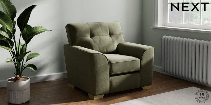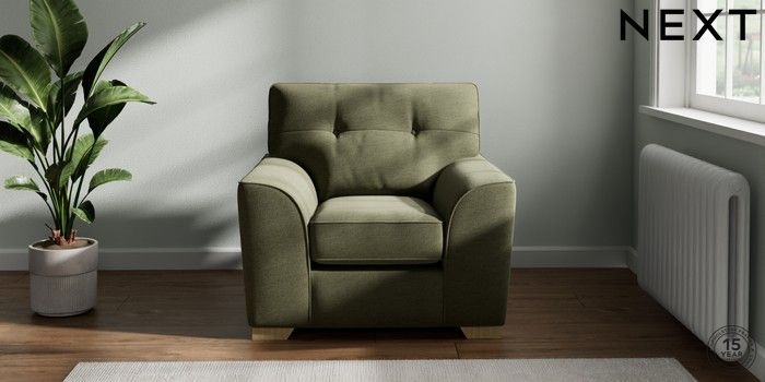 7.2.10 Stamford Buttoned Back Armchair Ripple Chenille Mid Moss Green Square Angle - Light | Made Click here to use our website with more accessibility support, for example screen readers