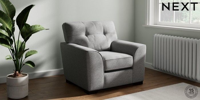 7.2.10 Stamford Buttoned Back Armchair Studio Chenille Mid Grey Square Angle - Dark | Made Click here to use our website with more accessibility support, for example screen readers