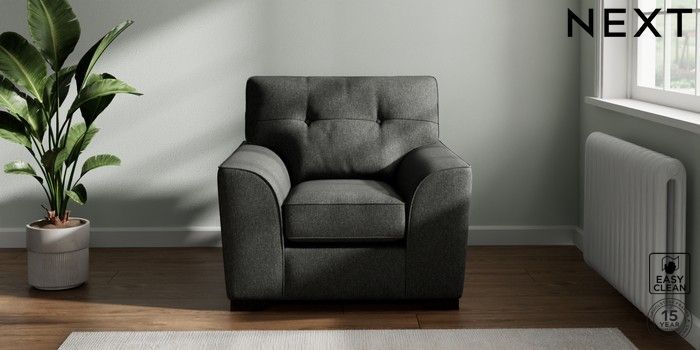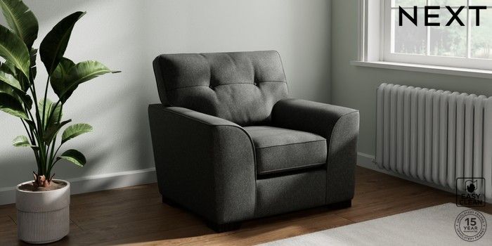 7.2.10 Stamford Buttoned Back Armchair Tweedy Blend Easy Clean Charcoal Grey Square Angle - Dark | Made Click here to use our website with more accessibility support, for example screen readers