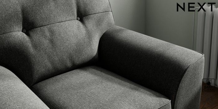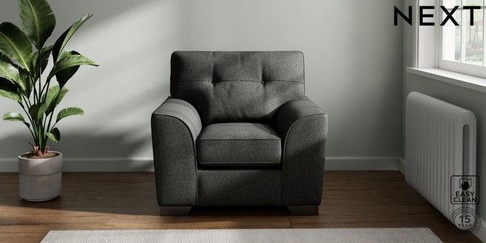 7.2.10 Stamford Buttoned Back Armchair Tweedy Blend Easy Clean Charcoal Grey Square Angle - Gunmetal | Made Click here to use our website with more accessibility support, for example screen readers