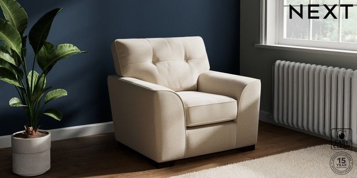 7.2.10 Stamford Buttoned Back Armchair Tweedy Blend Easy Clean Oyster Square Angle - Dark | Made Click here to use our website with more accessibility support, for example screen readers