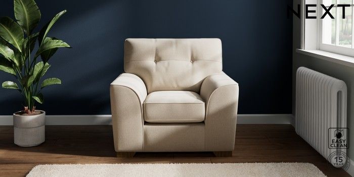 7.2.10 Stamford Buttoned Back Armchair Tweedy Blend Easy Clean Oyster Square Angle - Mid | Made Click here to use our website with more accessibility support, for example screen readers