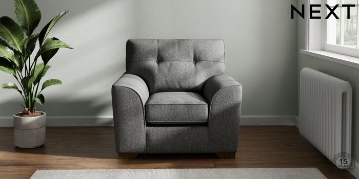 7.2.10 Stamford Buttoned Back Armchair Tweedy Chenille Dark Grey Square Angle - Mid | Made Click here to use our website with more accessibility support, for example screen readers