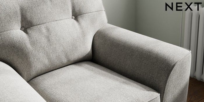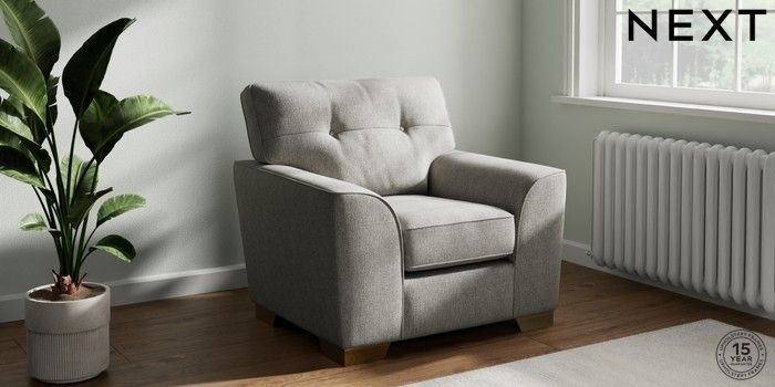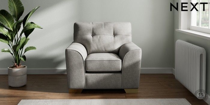 7.2.10 Stamford Buttoned Back Armchair Tweedy Chenille Mid Grey Square Angle - Brushed Brass | Made Click here to use our website with more accessibility support, for example screen readers