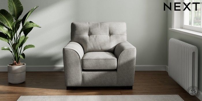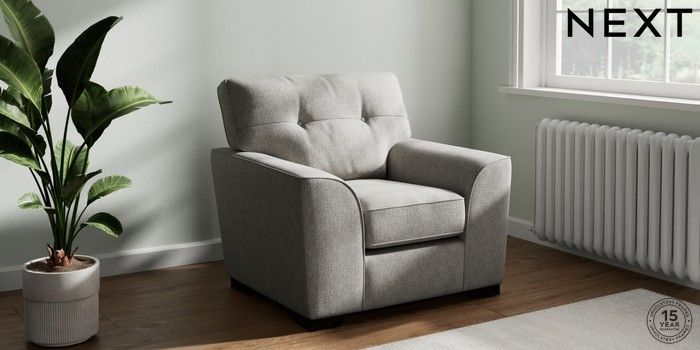 7.2.10 Stamford Buttoned Back Armchair Tweedy Chenille Mid Grey Square Angle - Dark | Made Click here to use our website with more accessibility support, for example screen readers